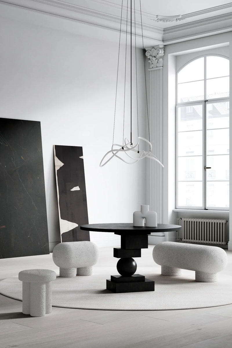 A padok és puffok egyszerre kínálnak pihenőhelyet, plusz ülőfelületet és finom hangsúlyt a térben – melegséget és harmóniát hozva a szobába anélkül, hogy elvennék a tágasság érzetét.